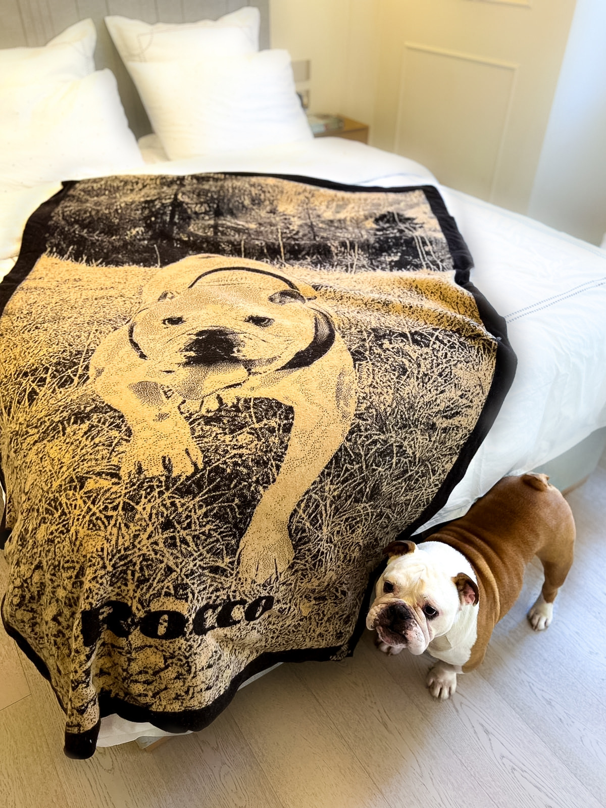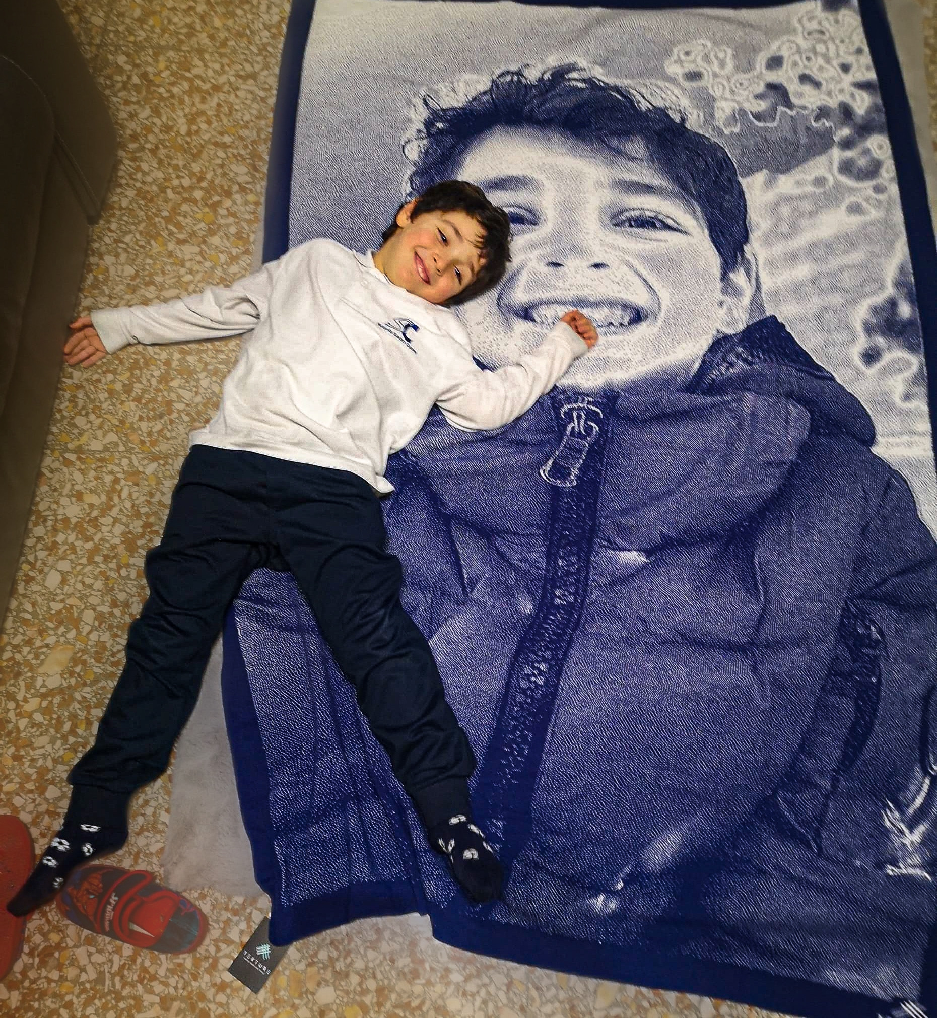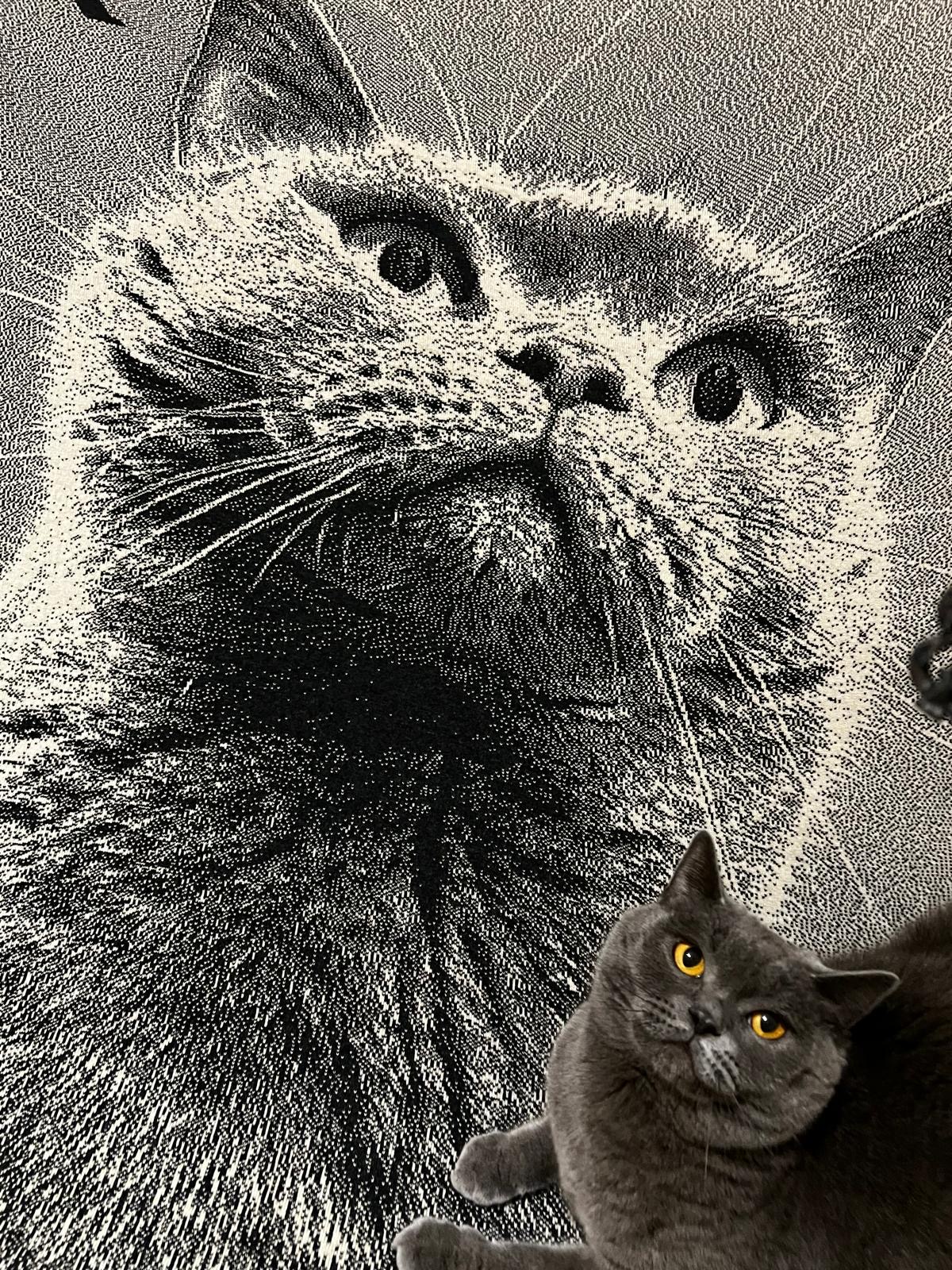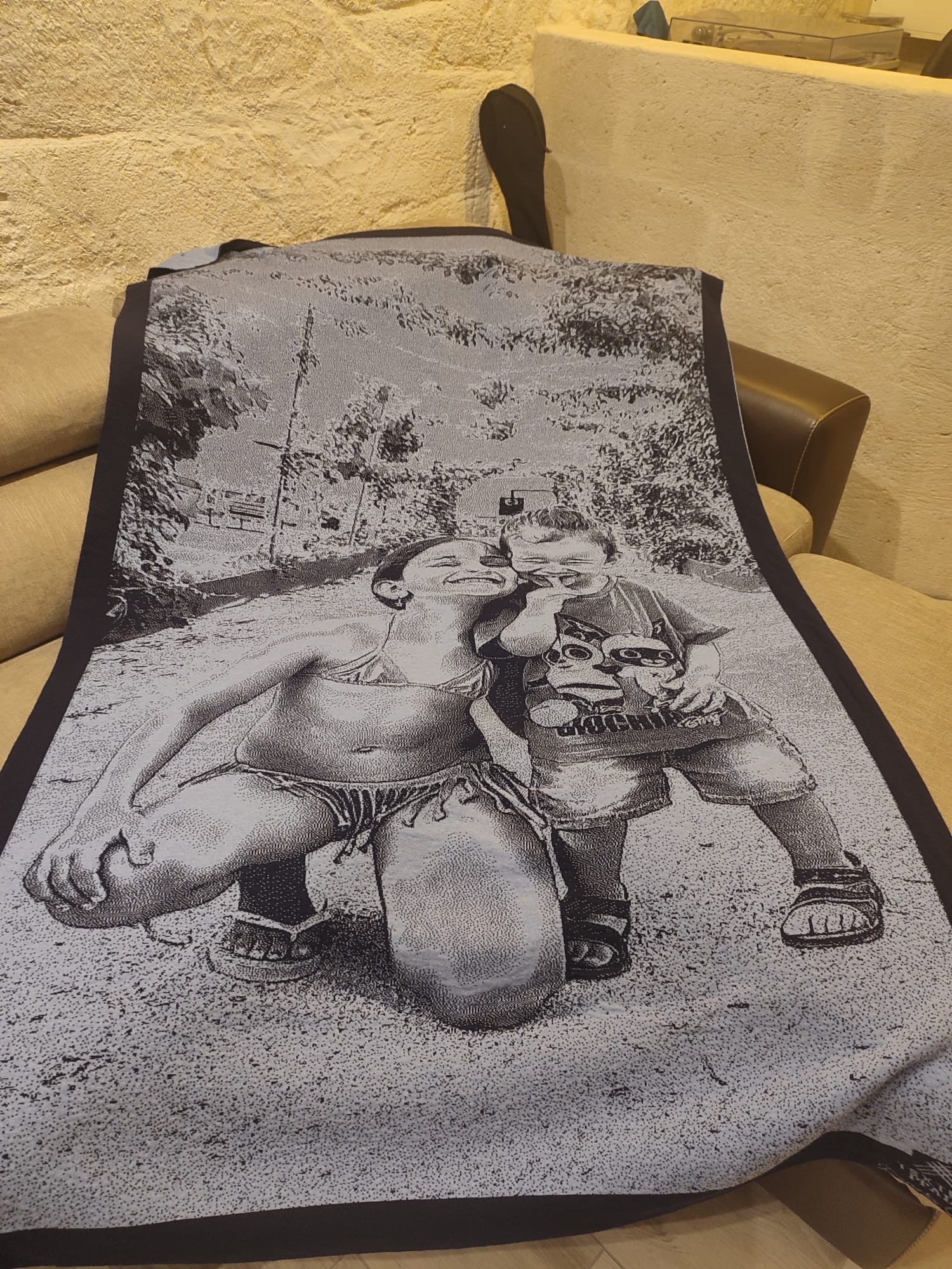 pixels in your photo into knitted points. The image is not simply printed but woven